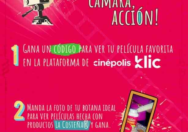 La Costeña te invita a participar a su concurso en el que podrás ganar 1 de 100 códigos para ver una película en Cinépolis Klic, si quieres ser ganador realiza la mecánica siguiente: