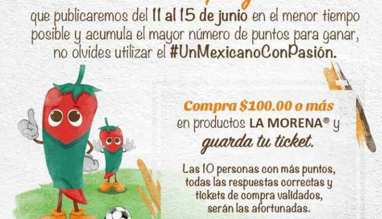 Ingresa a la página de Facebook de La Morena y dale like, quédate pendiente de la misma ya que entre el 11 y el 15 de Junio del 2018 ya que se publicarán diferentes preguntas que deberás responder correctamente usado el hashtag #UnMexicanoConPasión.