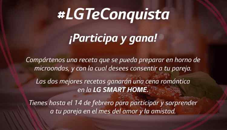 LG te invita a participar en el concurso LG te conquista, en la que dará como premio una cena romántica en la LG Smart Home, que se llevará a cabo el 27 de febrero.