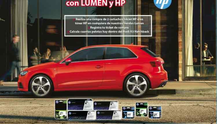 Compra 2 cartuchos de tinta InkJet HP o un tóner HP, registra tu ticket, calcula cuántas pelotas caben dentro del auto y gana un Audi A3 hatchback 2017