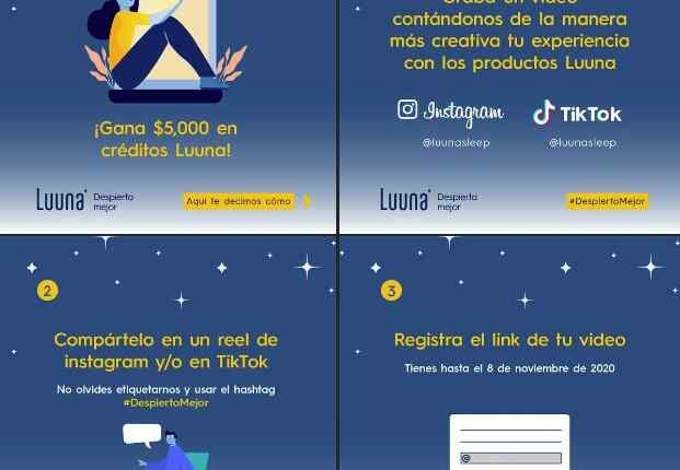 Sube tu video a tu cuenta de tiktok o en un reel de tu Instagram, etiqueta a @luunasleep y utiliza el hashtag #DespiertoMejor. Entra a colchones.luuna.mx/comparte-tu-descanso/ y registra tu video en el formulario.