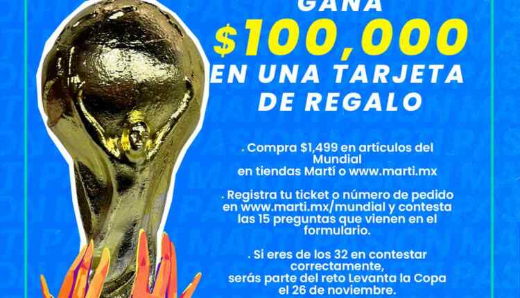 Martí te invita a participar a su concurso Levanta la Copa en el que podrás ganar $100,000.00 en tarjeta de regalo, si quieres ser ganador realiza la mecánica siguiente: