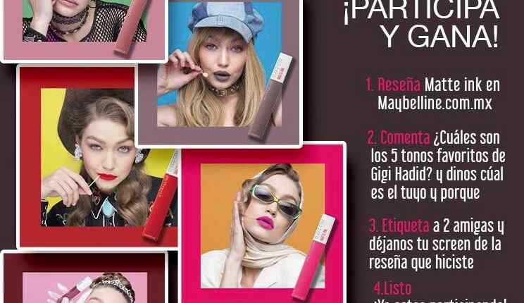 Reseña Matte Ink en maybelline.com.mx, ingresa a la página de Facebook de Maybelline New York y dale like, ubica la publicación del concurso y en la sección de comentarios menciona cuáles son los 5 tonos de los Superstay Matte Ink favoritos de Gigi Hadid