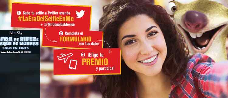 McDonalds y la película la Era de Hielo Choque de Mundos presentan un nuevo concurso #LaEraDelSelfieEnMc en donde regala un iPad Mini 4 y un viaje a Malasia.
