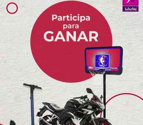 Suburbia te invita a participar a su concurso Mi Moto en el que podrás ganar una moto Italika RT250, patín eléctrico o tablero de baloncesto, si quieres ser ganador realiza la mecánica siguiente: