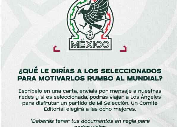 Escribe una carta con lo que le dirías a los seleccionados para motivarlos rumbo al mundial y gana 1 de 8 viajes dobles a un partido de la Selección Mexicana en Los Angeles