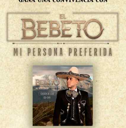 Adquiere el CD+DVD “Mi Persona Preferida” de El Bebeto en tiendas Mixup o en www.mixup.com y guarda tu ticket o número de pedido ya que de ser ganador te será solicitado para recoger tu premio.