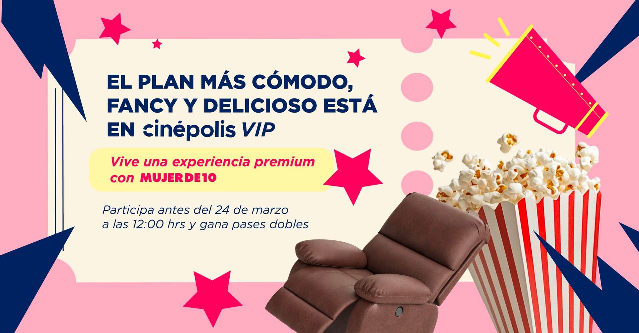 Mujer de 10 te invita a participar a su concurso en el que podrás ganar boletos para Cinépolis VIP, si quieres ser ganador realiza la mecánica siguiente: