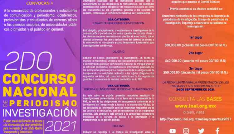 El Instituto Nacional de Transparencia te invita a participar a su Segundo Concurso Nacional de Periodismo INAI 2021 en el que podrás ganar hasta $80,000.00, si quieres ser ganador realiza la mecánica siguiente: