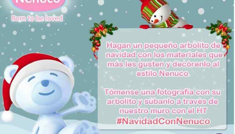 Ingresa a la página de Facebook de Nenuco y dale like, pide a tu hijo o hija que te ayude a hacer un arbolito de navidad con los materiales que más les gusten y decórenlo al estilo Nenuco, cuando tengan su arbolito listo deberán tomarse una foto muy original y creativa junto a el