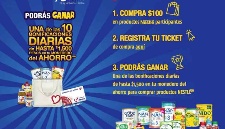 Compra $100 de productos Nestlé, registra tu ticket y gana bonificaciones diarias de hasta $1,500