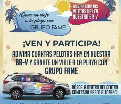 Busca la camioneta Honda BR-V en Paseo Altozano, tómate una selfie y compártela en el muro de Facebook de Grupo FAME indicando la cantidad de pelotas que crees que hay en el interior de la camioneta