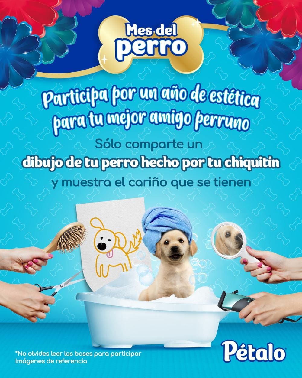 Ingresa a la página de Facebook de Pétalo y dale like, ubica la publicación del concurso y en los comentarios sube un dibujo de tu perrito hecho por algún infante, no hay límite en la creatividad.