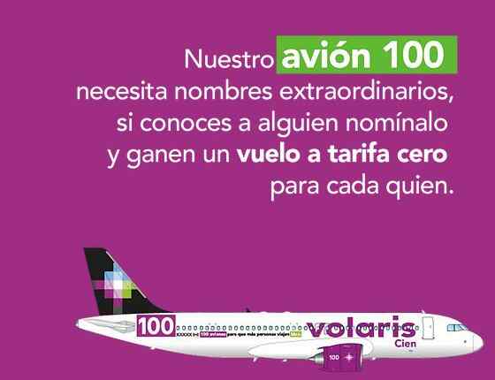 Volaris te invita a participar a su concurso Ponle tu Nombre a un Avión en el que podrás ganar 1 de 100 vuelos, si quieres ser ganador realiza la mecánica siguiente: