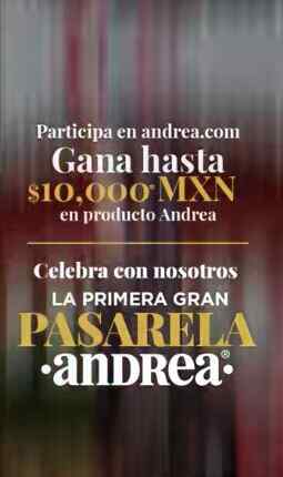 Andrea te invita a participar a su concurso Primer Gran Pasarela Andrea en el que podrás ganar $10,000.00 en productos Andrea, si quieres ser ganador realiza la mecánica siguiente: