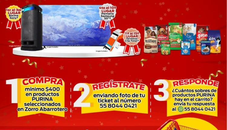 Purina y Zorro Abarrotero te invitan a participar a su concurso en el que podrás ganar pantallas, bocinas Sony y más, si quieres ser ganador realiza la mecánica siguiente: