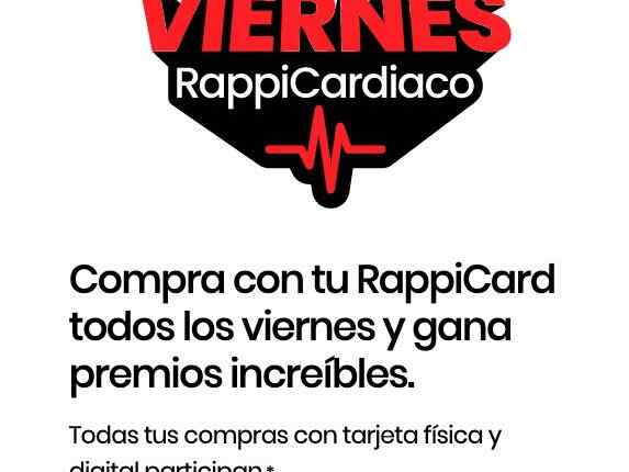 Para poder participar deberás ser tarjetahabiente de RappiCard, realiza una compra mínima de $500.00 hoy viernes con tu RappiCard física o digital, en cualquier establecimiento físico o en línea.