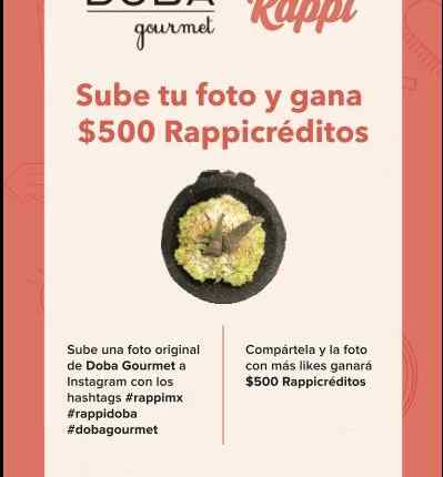 Rappi México y Doba Gourmet te invitan a participar a su concurso en el que podrás ganar $500 en Rappicréditos, si queres ser ganador realiza la mecánica siguiente: