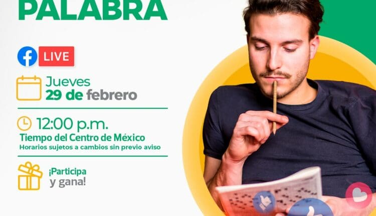 Únete a la transmisión en vivo hoy jueves 29 de febrero de 2024 en punto de las 12:00 horas a través de la página de Facebook de Salud Digna. En la transmisión se te mostrarán las letras revueltas de la palabra correcta, además de una pista y deberás armar la palabra escribiendo correctamente en comentarios la respuesta.