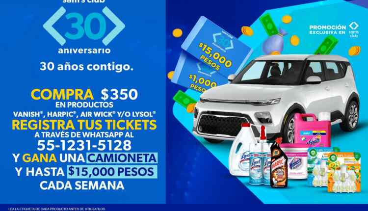 Sams te invita a participar a su concurso de 30 Aniversario en el que podrás ganar camioneta Kia Soul 2021, premios de $15,000.00 cada semana y más, si quieres ser ganador realiza la mecánica siguiente: