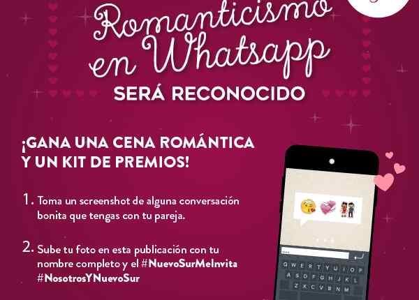 Para participar ingresa a la publicación de la promoción y publica la foto de la conversación/chat más romántico por Whatsapp que hayas tenido con tu pareja.
