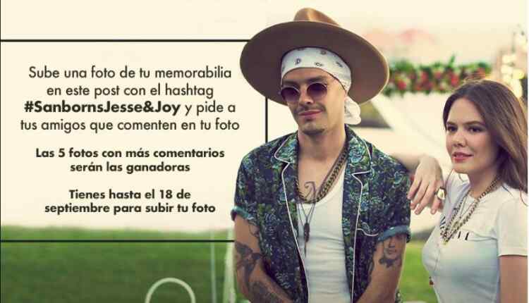 Ingresa a la pagina de Facebook de Sanborns y dale like, ubica la publicación del concurso y en la sección de comentarios comparte tu memorabilia saneo el hashtag #SanbornsJesse&Joy