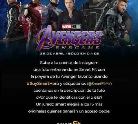 Smart Fit te invita a participar a su concurso en el que podrás ganar boletos dobles para la fiesta de Avengers Endgame, si quieres ser ganador realiza la mecánica siguiente: