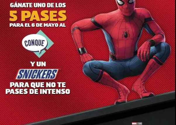 Snickers y Spiderman te invitan a participar en su concurso en el que podrás ganar entradas para la Conque México 2017, si quieres ser ganador realiza la mecánica siguiente: