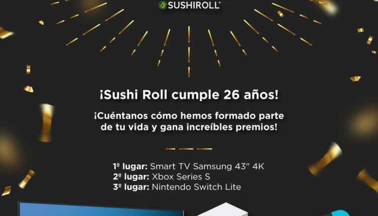 Sushi Roll te invita a participar a su concurso de 26 Aniversario en el que podrás ganar pantalla 4K, Xbox Series S o Nintendo Switch Lite, si quieres ser ganador realiza la mecánica siguiente: