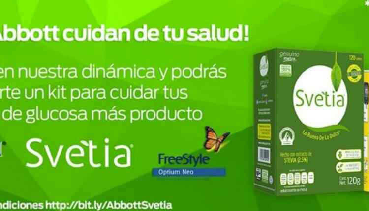 Svetia y Abott regalarán a los participantes ganadores: Un Kit que contiene un Glucómetro Abbott Optium Neo, 3 Glucernas suplemento alimenticio de 237 ml de sabores aleatorios y un paquete de Svetia de 100 sobres.