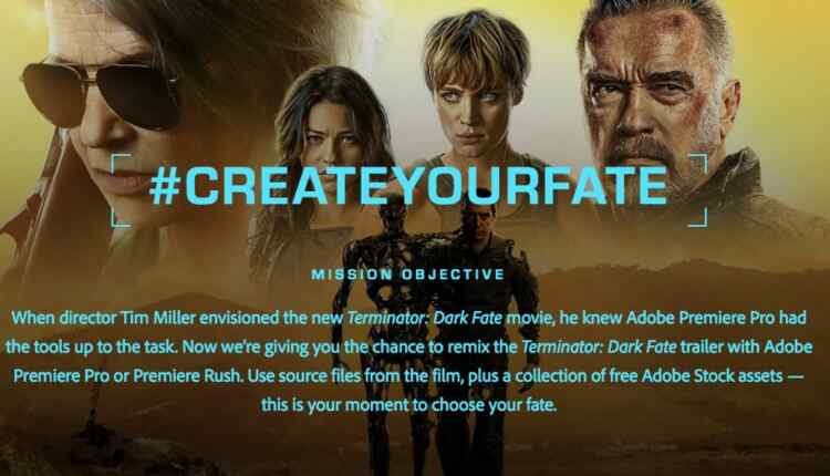 Remezcla el tráiler de Terminator: Dark Fate con Adobe Premiere Pro o Premiere Rush y gana hasta $10,000 dólares y más