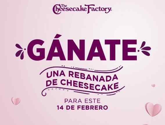 The Cheesecake Factory México te invita a participar a su concurso de San Valentín en el que podrás ganar 1 de 10 cortesías de rebanadas de cheesecake, si quieres ser ganador realiza la mecánica siguiente: