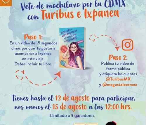 Turibus te invita a participar a su concurso en el que podrás ganar 1 de 5 pases para irte de mochilazo por la CDMX con Ixpanea y Turibus, si quieres ser ganador realiza la mecánica siguiente: