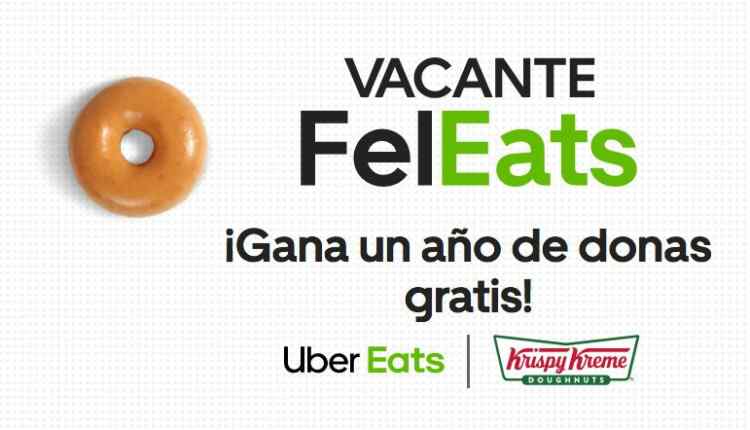 Uber Eats te invita a participar a su concurso Vacante FelEats en el que podrás ganar un año de donas gratis, si quieres ser ganador realiza la mecánica siguiente: