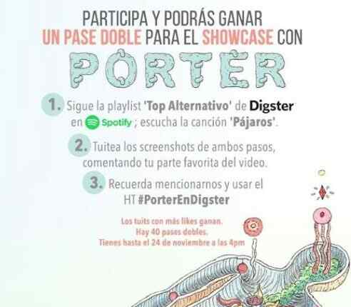 Tuitea tus capturas de pantalla, menciona cuál es tu parte favorita del video Pájaros, etiqueta a Universal Music y utiliza el hashtag #PorterEnDigster, pide a tus amigos y familiares que le den loe a tu tuit, los tuits con más likes serán los ganadores