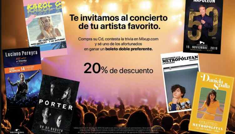 Compra el disco de alguno de los artistas participantes, registra tu ticket, contesta la trivia y gana boletos para el concierto de tu artista favorito