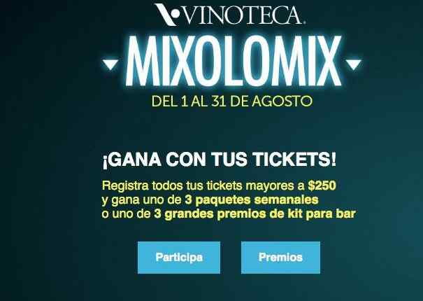 Ingresa a http://ganaconvinoteca.com/index.php/page/login, llena el formulario y registra todos los tickets de compra que hayas acumulado durante la vigencia del concurso, si eres el participante que más tickets registre ganarás kits para bar, además cada semana se sortearán 3 kits de botella y mezclador.