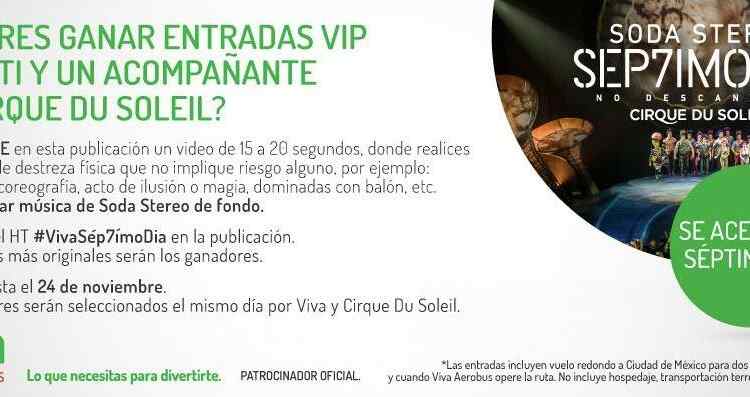 Viva Aerobus regalará a los participantes ganadores vuelo a CDMX y entradas al Cirque du Soleil Soda Stereo