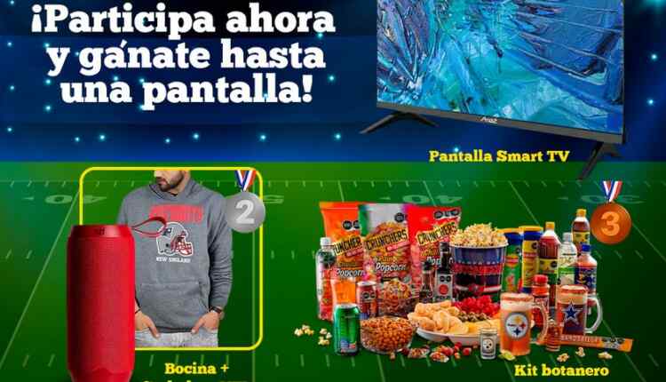 Primer Lugar: 1 pantalla, 3 sudaderas de NFL, kit botanas y bebidas, un tarro cervecero.