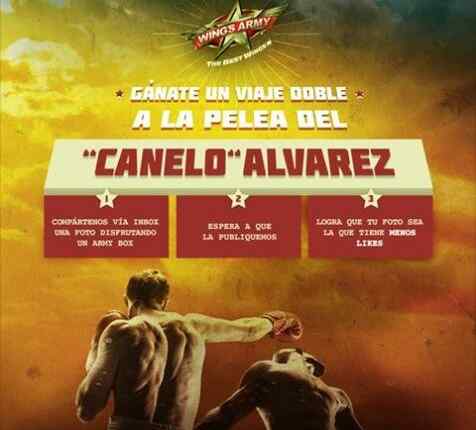 Wings Army te invita a participar en su concurso en el que podrás ganar viaje a la pelea Canelo vs. Chávez Jr. en Las Vegas, si quieres ser ganador realiza la mecánica siguiente: