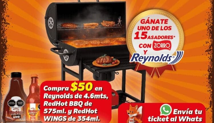 Zorro Abarrotero te invita a participar a su concurso en el que podrás ganar 1 de 15 asadores + kit de productos Reynolds, si quieres ser ganador realiza la mecánica siguiente: