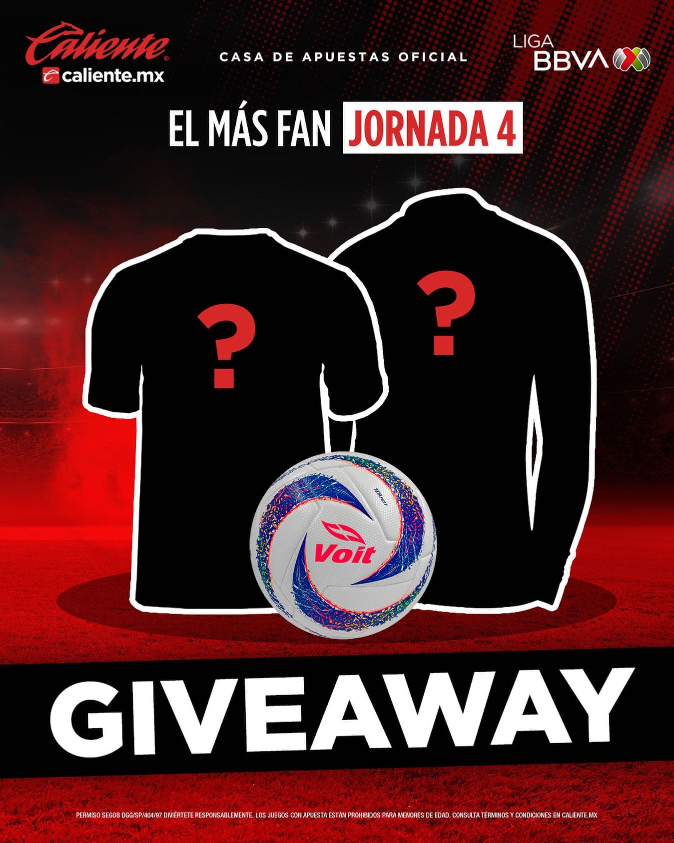 Caliente Sports regalará al participante ganador: Un starter pack con jersey, chamarra y balón.