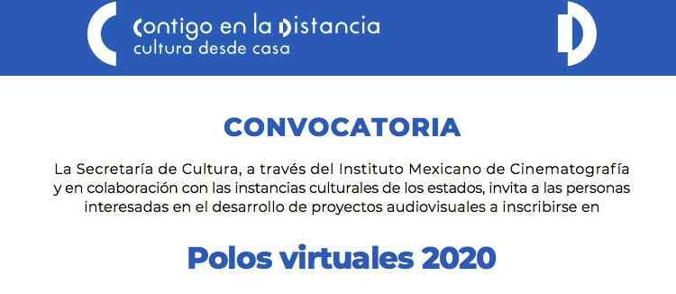La Secretaría de Cultura, a través del Instituto Mexicano de Cinematografía y en colaboración con las instancias culturales de los estados te invita a participar a su concurso Polos Virtuales 2020 en el que podrás ganar asesoría gratis del Imcine para tu proyecto, si quieres ser ganador realiza la mecánica siguiente: