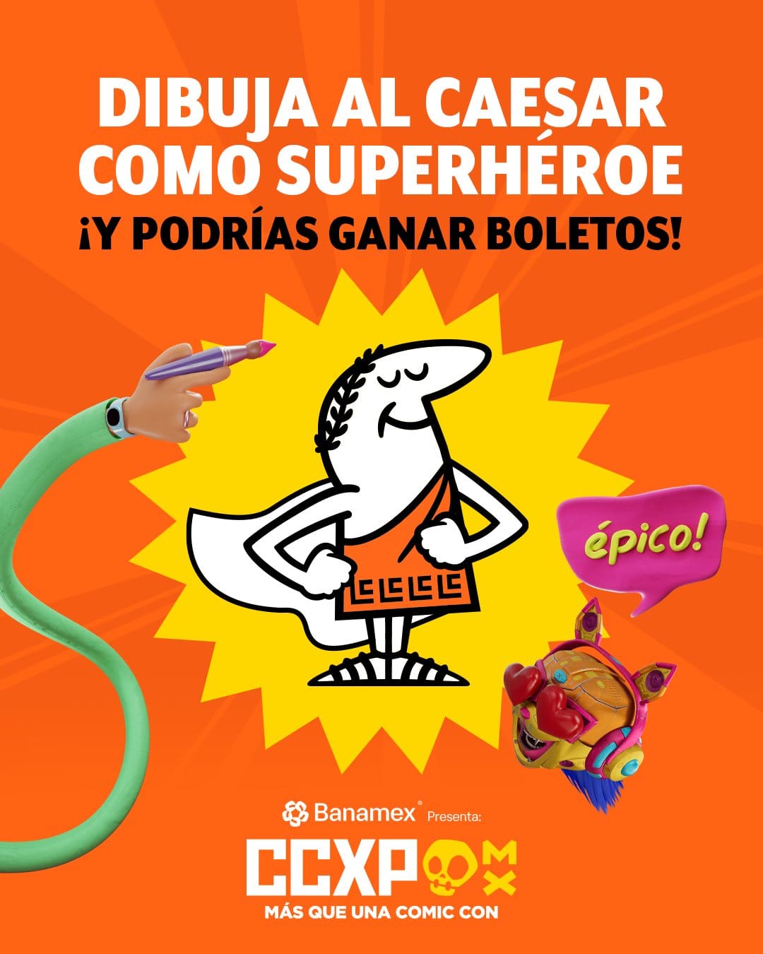 Crea una ilustración/dibujo del Caesar convertido en superhéroe y gana boletos para la CCXPMX26