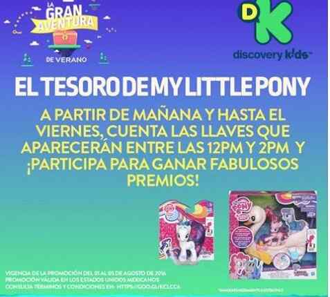 Los ganadores del concurso “EL TESORO DE MY LITTLE PONY” de Discovery Kids serán los primeros 24 participantes en contestar correctamente y cumplir con las bases de la promoción