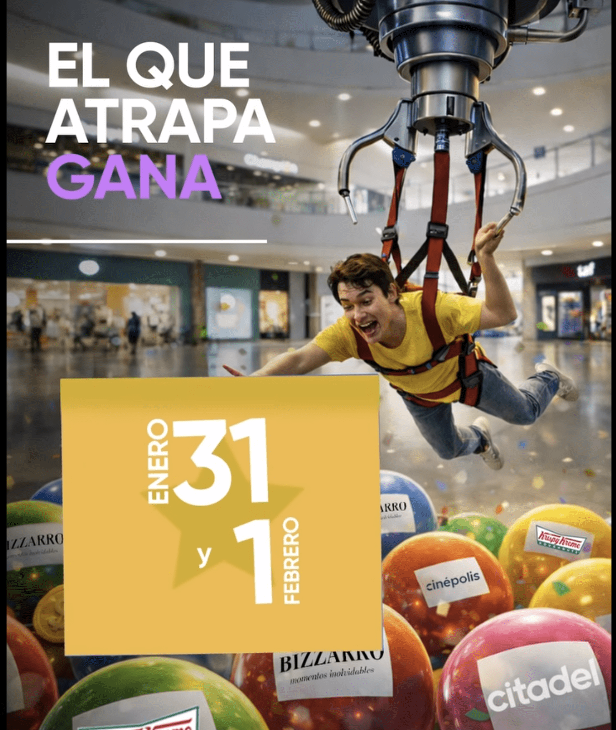 Visita Citadel Monterrey y realiza una compra mínima de $500.00 en cualquier tienda. Presenta tu ticket de compra en el módulo y participa en la garra humana en el área central de Citadel.