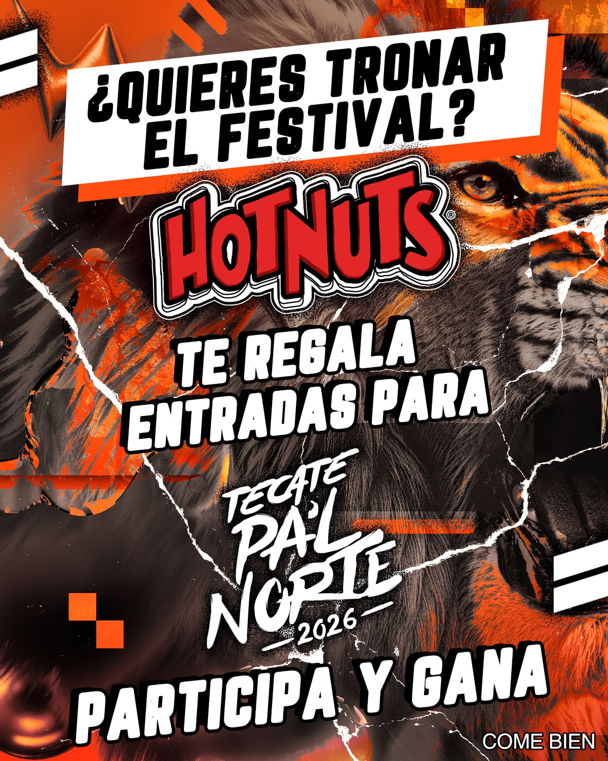 HotNuts Barcel te invita a participar a su concurso en el que podrás ganar un boleto doble al Festival Tecate Pa’l Norte 2026, si quieres ser ganador realiza la mecánica siguiente: