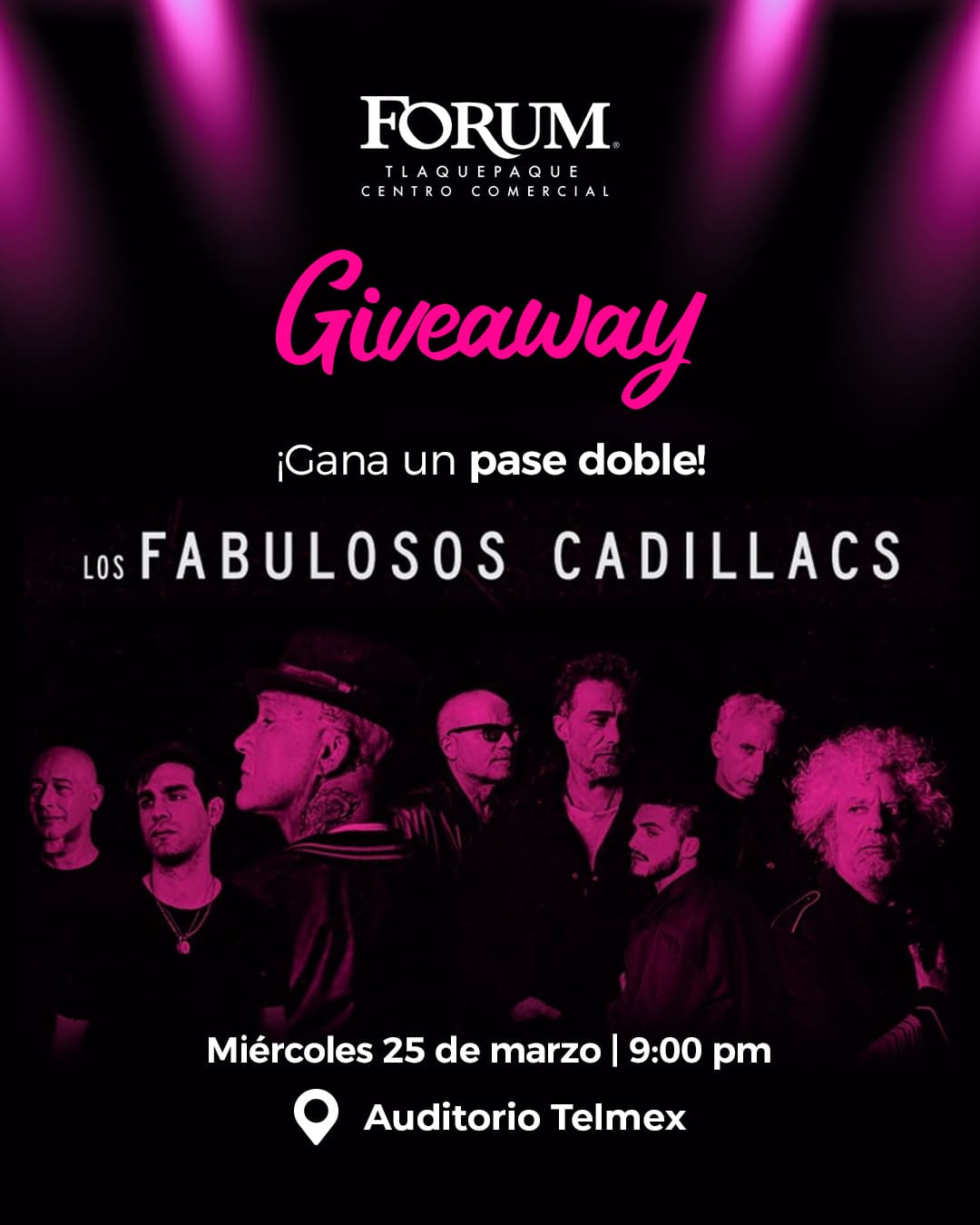 Fórum Tlaquepaque te invita a participar a su concurso en el que podrás ganar una entrada doble para ver a Los Fabulosos Cadillacs, si quieres ser ganador realiza la mecánica siguiente: