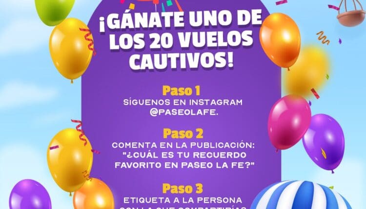 Paseo La Fe te invita a participar a su concurso en el que podrás ganar 1 de 20 vuelos cautivos en globo, si quieres ser ganador realiza la mecánica siguiente: