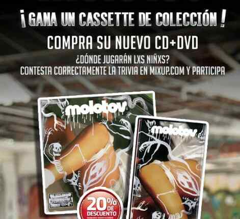 Adquiere el CD+DVD “¿Dónde jugarán lxs niñxs?” de Molotov en tiendas Mixup o en www.mixup.com y guarda tu ticket o número de pedido ya que de ser ganador te será solicitado para recoger tu premio.
